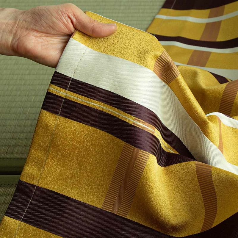 高密度のジャカード織なので、表面はなめらかで、程よいハリ感。シャキッと気持ちの良い風合いです。 絹の着物の様な高級感が漂います。