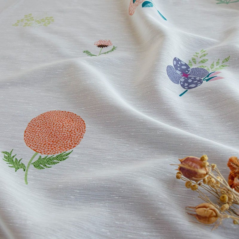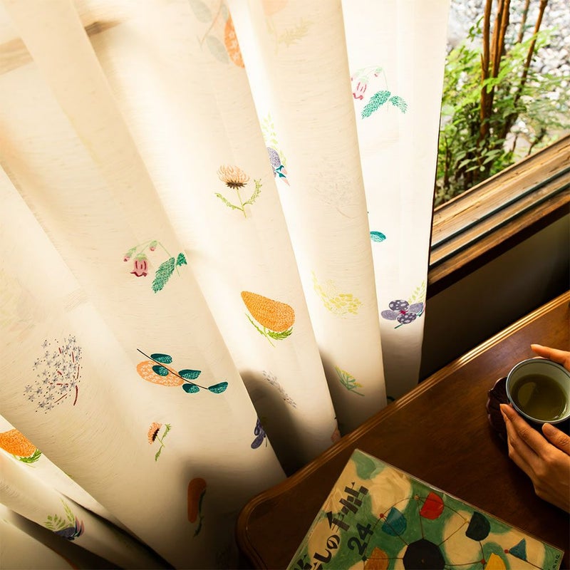 繊細なタッチで丁寧に描いたイラストを、カーテンにしました。