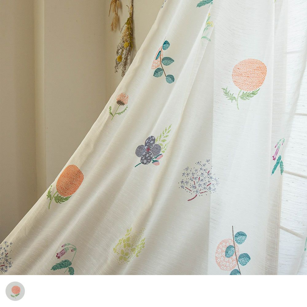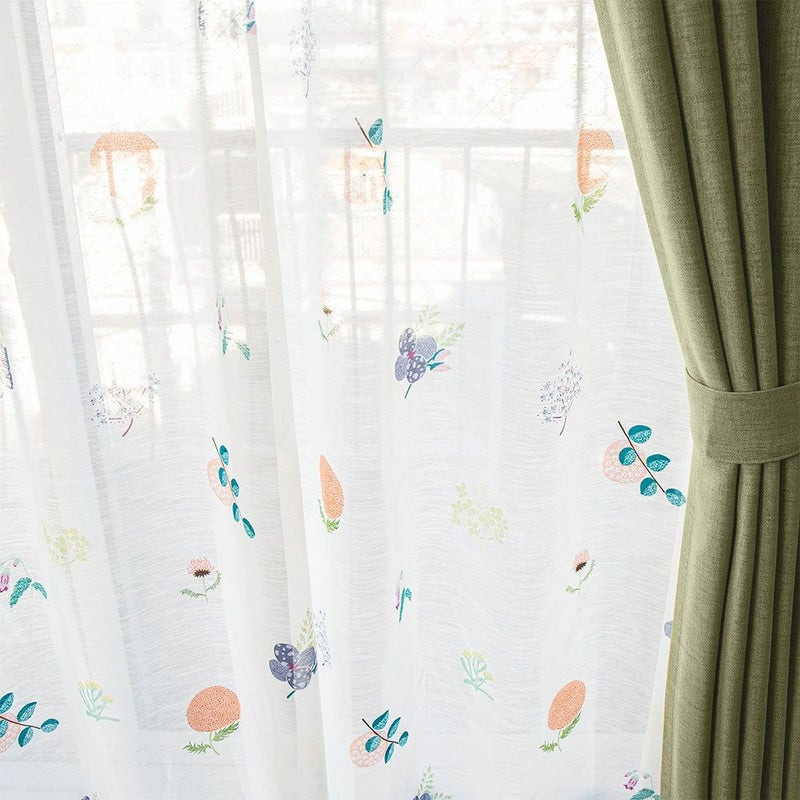 レトロなイラストみたいな可愛いレースカーテン。光を受けて、お部屋に可愛らしい花を咲かせます。