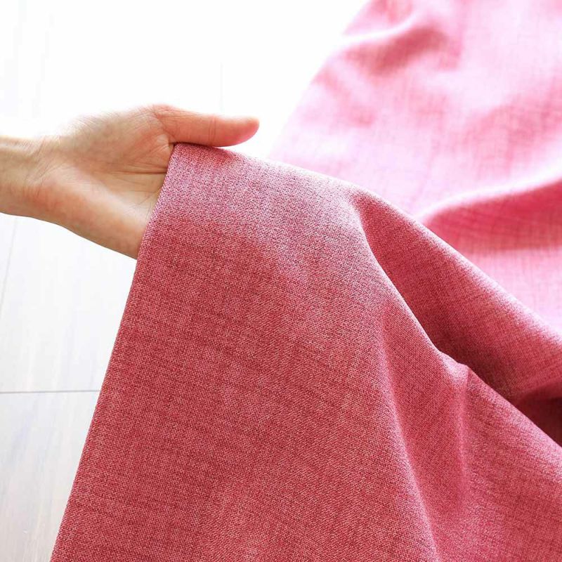 【撮影コーディネート】レースカーテン<ボタンレース>レッド タッセル<ガレット> ピンク色鮮やかなPOPカラーの遮光カーテン。無地ながらも存在感ばっちりで、お部屋をハッピーなムードで包み込んでくれます。レトロチックな見た目とは裏腹に、機能性が抜群。<アトリエ>で楽しく快適な毎日を♪