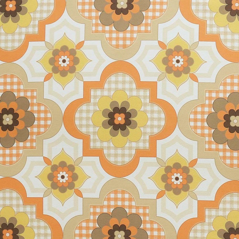 ギンガムチェックの、レトロフラワータイル柄