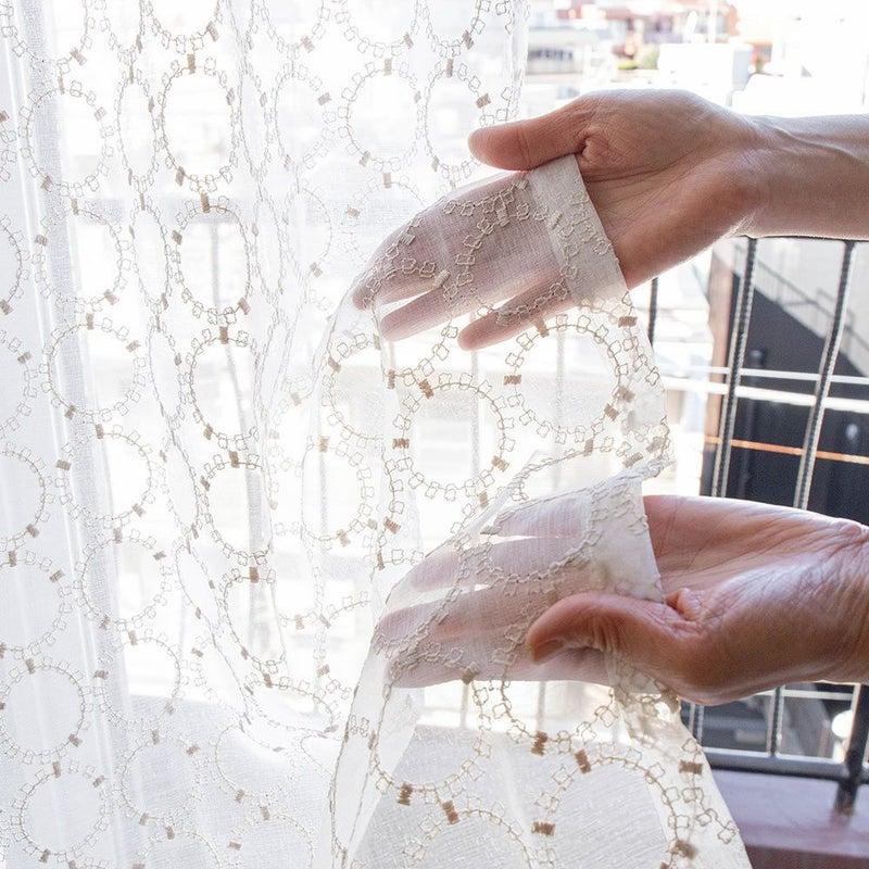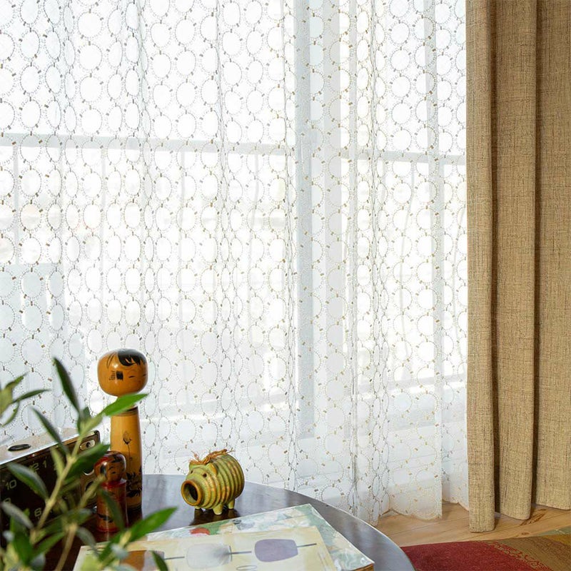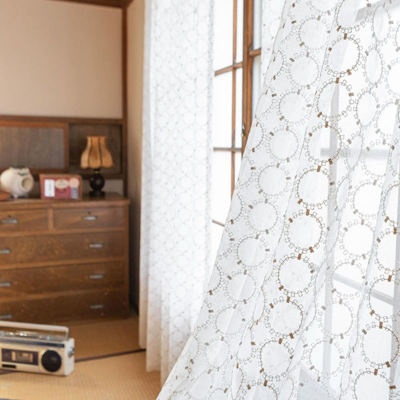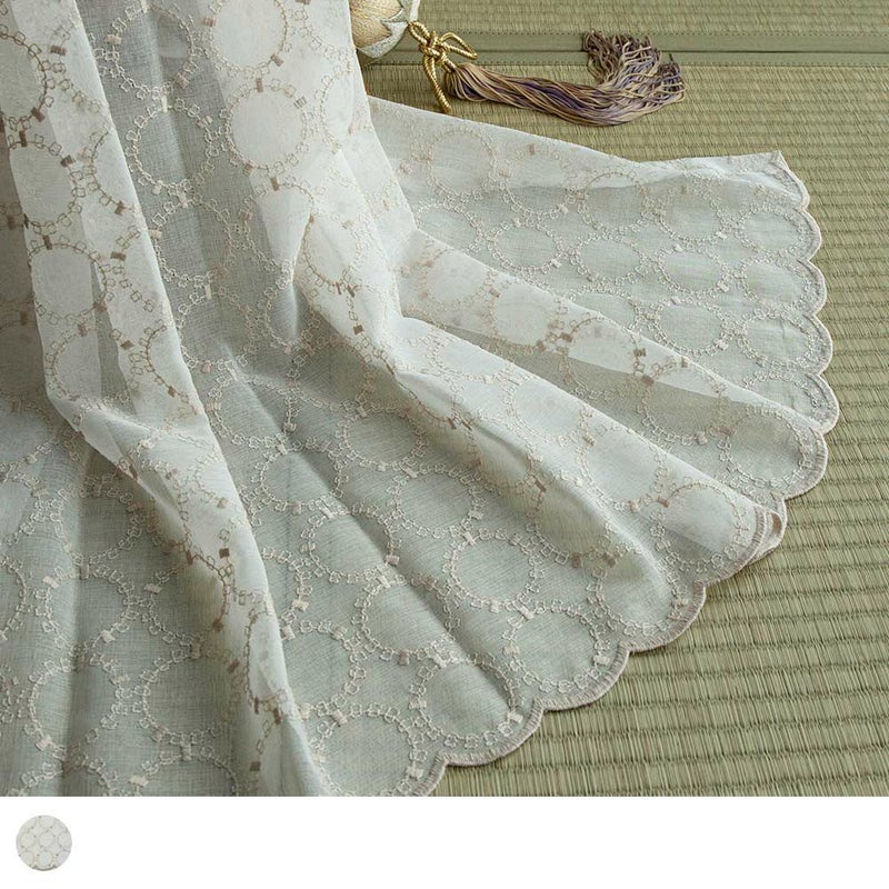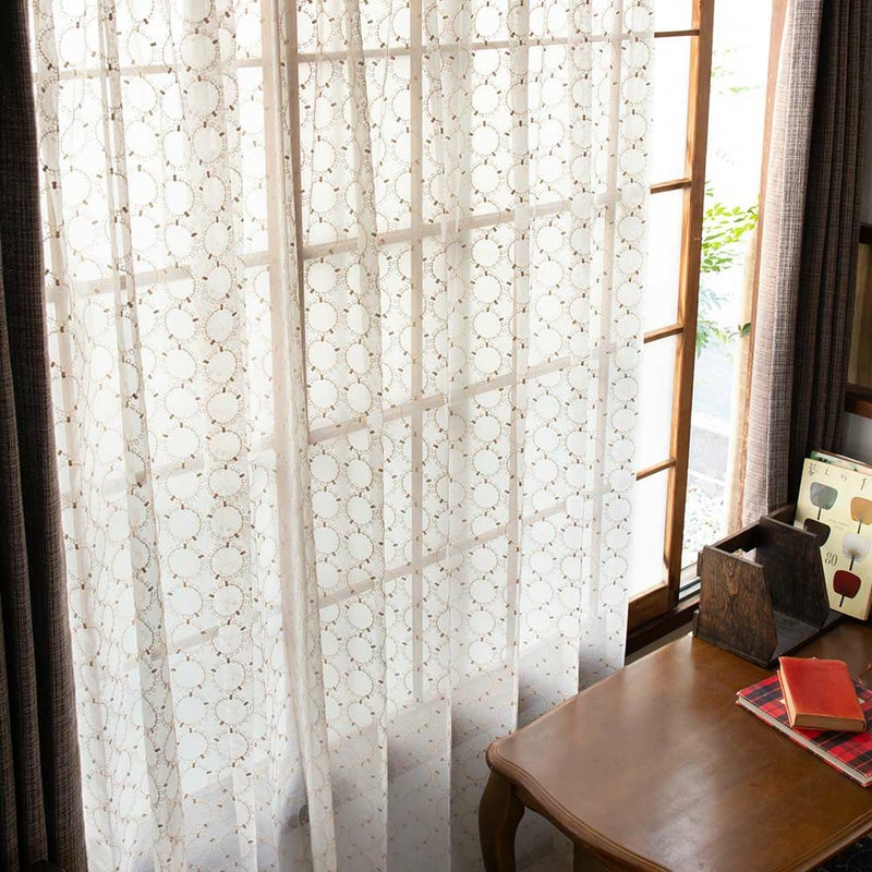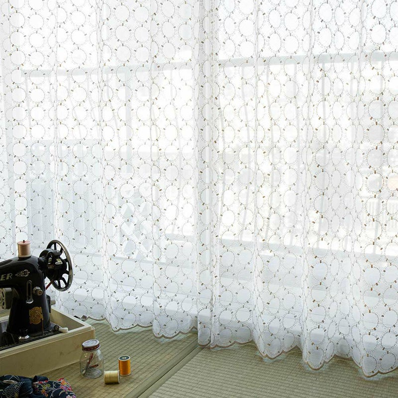 まん丸モチーフの、可愛い刺繍レースカーテン