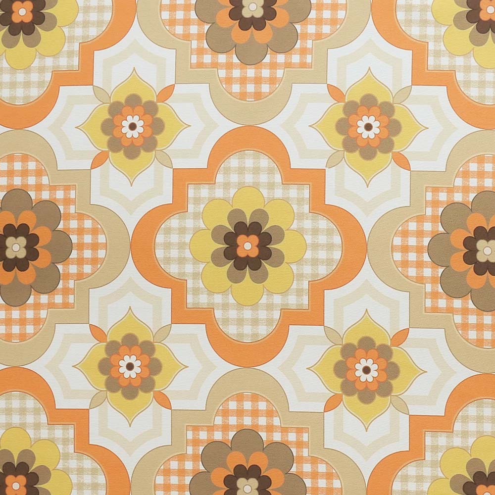 レトロなフラワー柄に、ダサ可愛いギンガムチェックを組み合わせたタイル柄。「可愛いもの」をこの1枚にギュッと詰め込みました。レトロ喫茶店のタイルや60年代のキッチンにあるクロス、どこかで見たような懐かしさが魅力です。ちょっと色あせたようなレトロカラーも可愛い!
