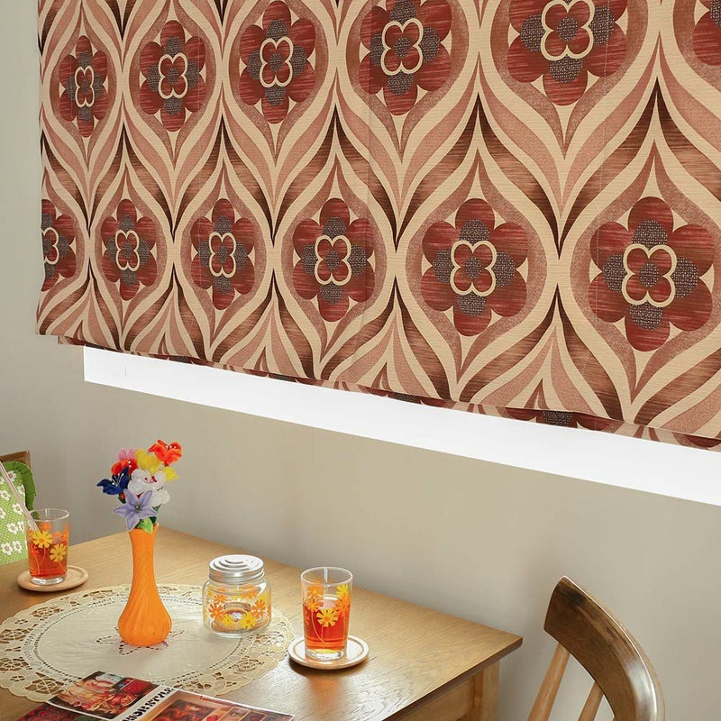 レトロポップな遮光シェードカーテンが誕生!ヴィンテージのウォールペーパー柄をモチーフにして、当店オリジナルで作りました。ここにしかないキュートなシェードカーテンで、あなただけの個性あふれるレトロルームを作ってみませんか?