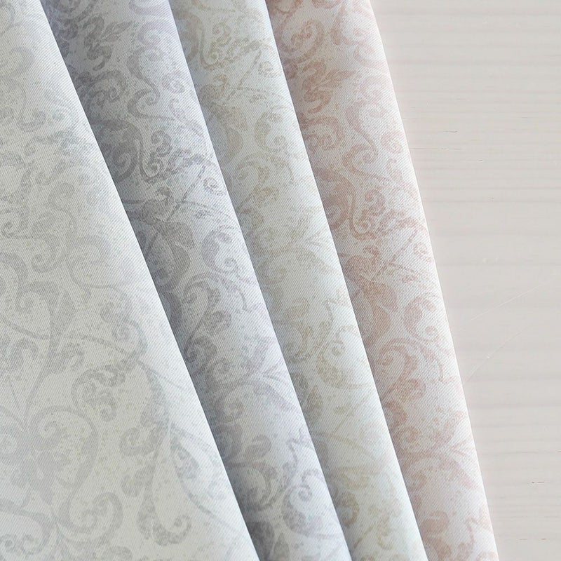 ダマスク模様が美しい、アンティークシャビーなカーテン「エテルノ」。使い込まれたような質感や色褪せたトーンに浮かび上がるダマスク模様は、プリント加工で表現。リッチなムードを演出しつつ、洗練された落ち着きのある空間を演出します。