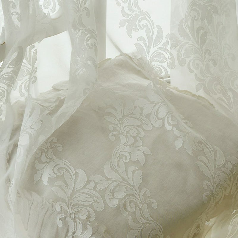 ダマスク柄が浮かぶ、ロマンティックなシャビーシックカーテン