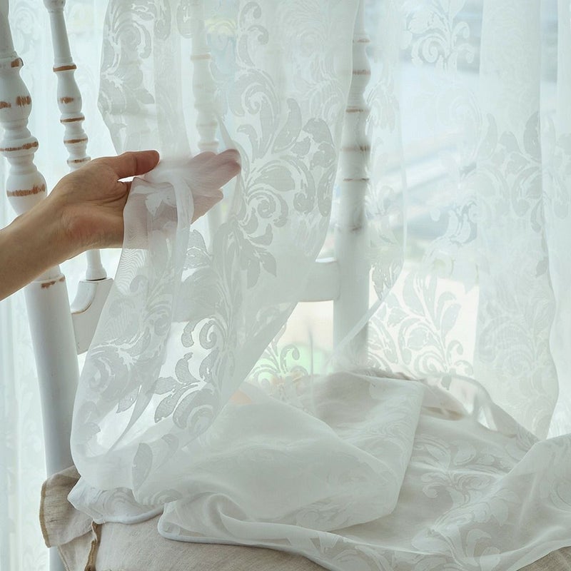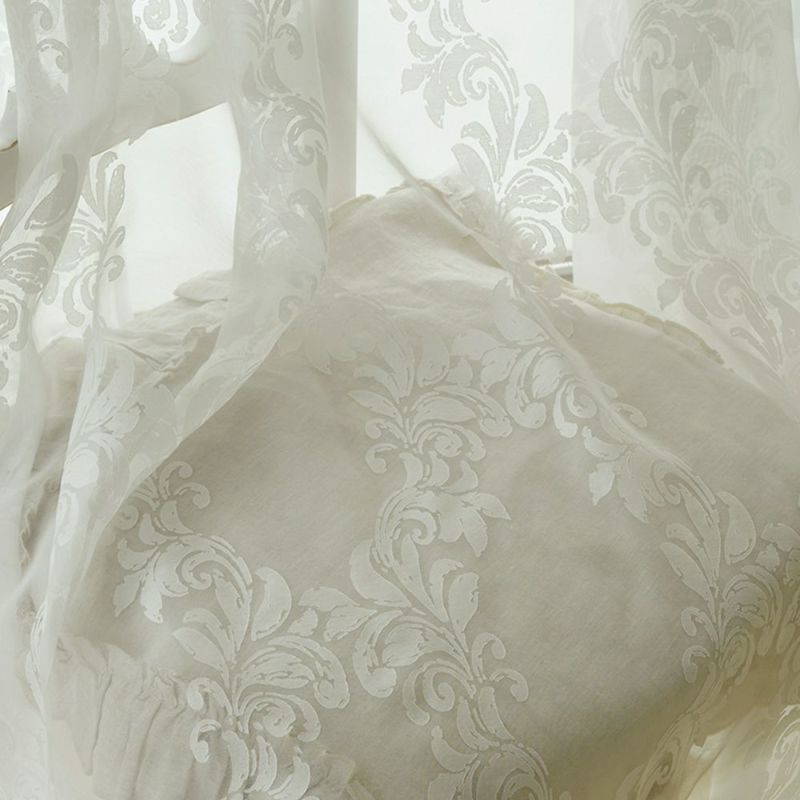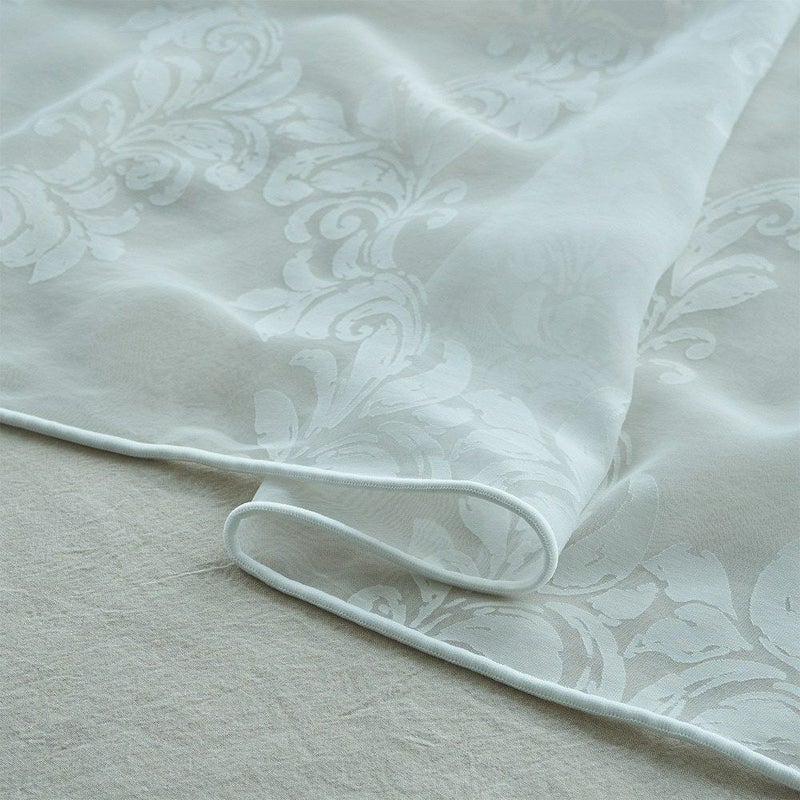 洗練されたシャビーシックなにふさわしい、繊細で美しい佇まいの一枚です。 ホワイト一色のため、どんな空間にも、またどんなドレープカーテンにも自然に馴染み、静かに華やぎを添えてくれます。 -
