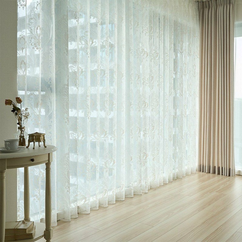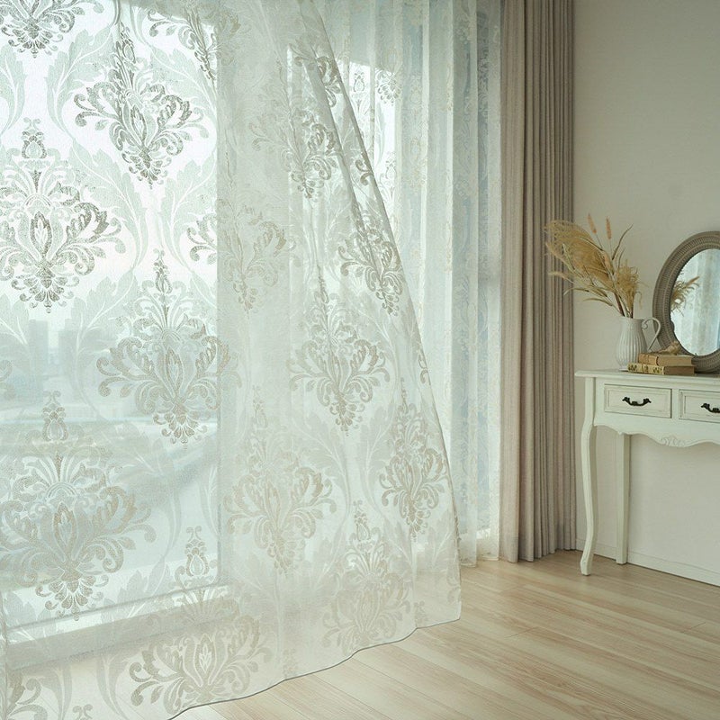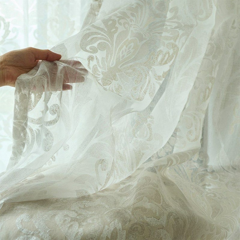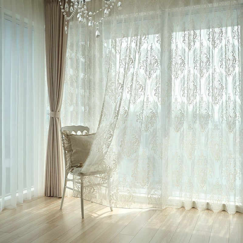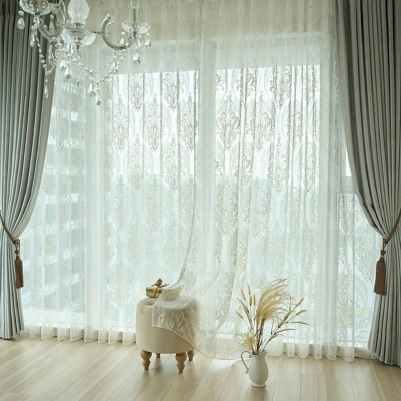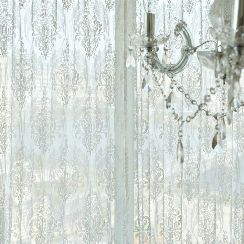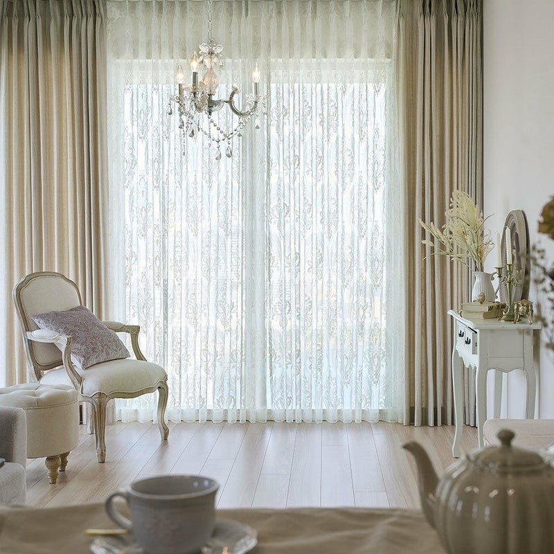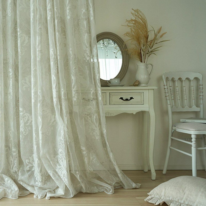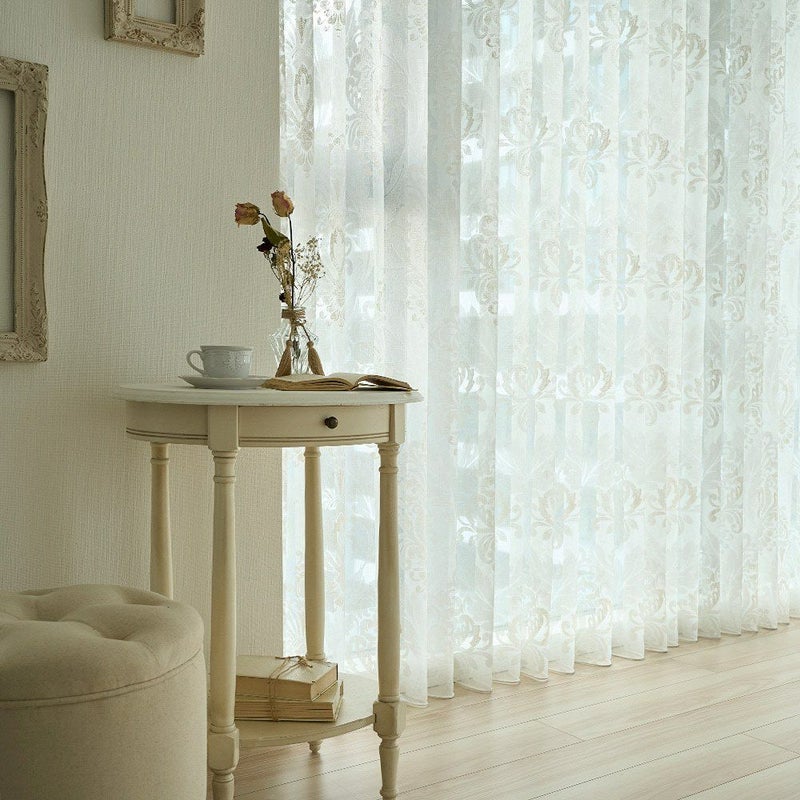儚くも美しい、ダマスク柄のレースカーテン