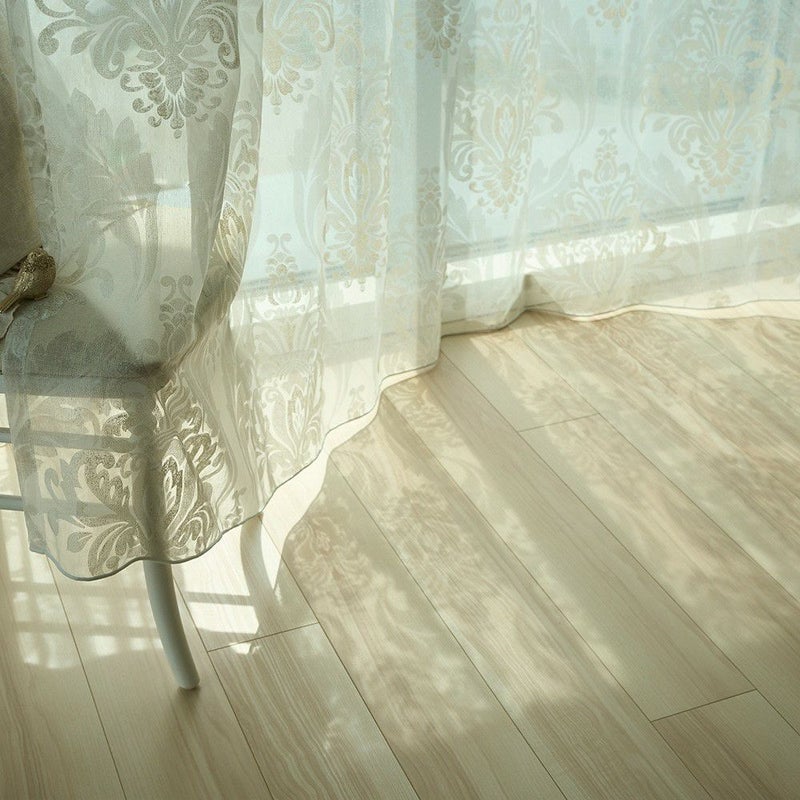 光を受けると、床にまで柄が映し出され、まるで柔らかな木漏れ日のよう。 カーテンがふわりと揺れるたびに、影のかたちがゆるやかに移ろい、眺めているだけで心がときめきます。