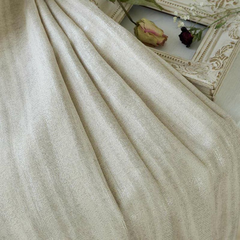 光沢糸が織りなす、まるでアンティークパールのような繊細な煌めきが美しいファブリック。