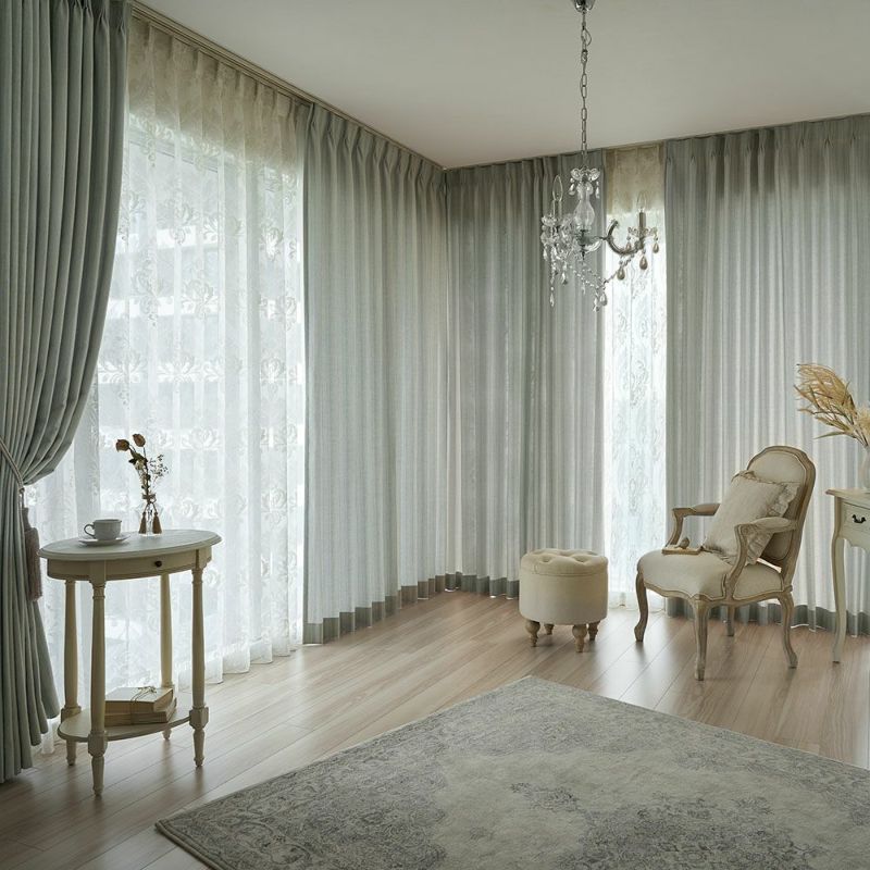 色あせたホワイトのアンティーク家具に、静かに揺れるシャンデリアの灯り。 そんなシャビーシックなインテリアにそっと寄り添う、ロマンティックなカーテンです。