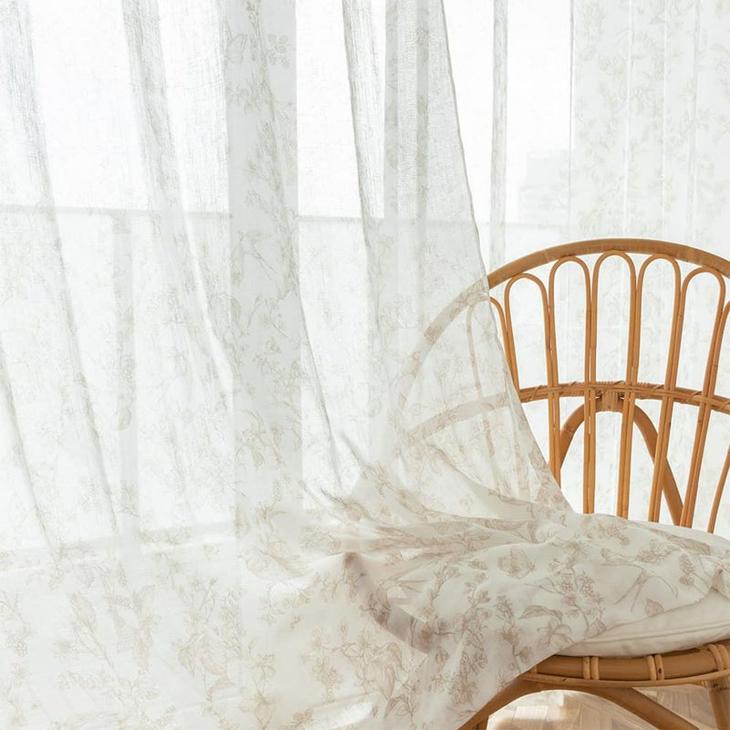 かすれたタッチで描かれたアンティーク調のボタニカル柄レースカーテン。陽ざしを受けて浮かびあがる、ボタニカルのデザインがナチュラルなテイストにピッタリ♪