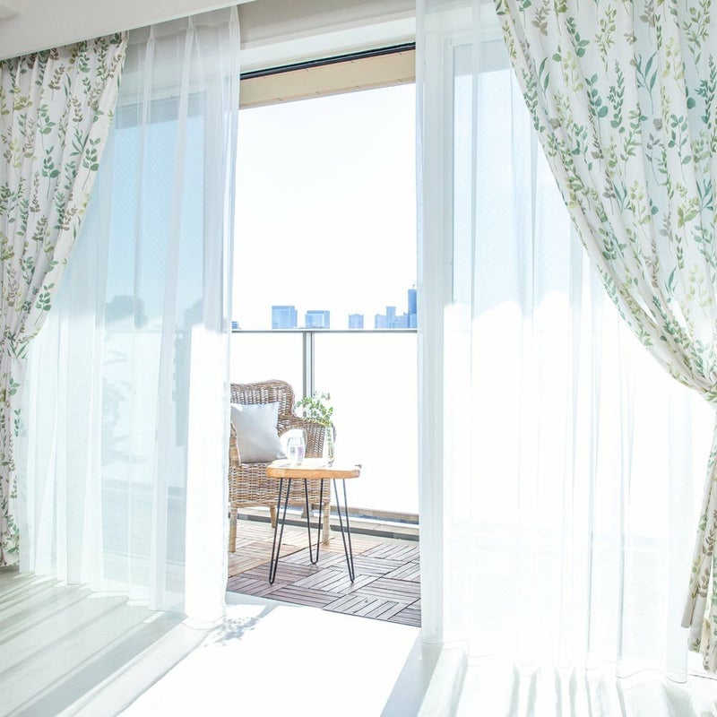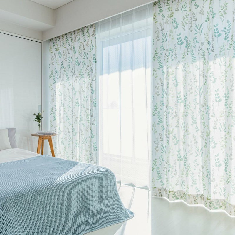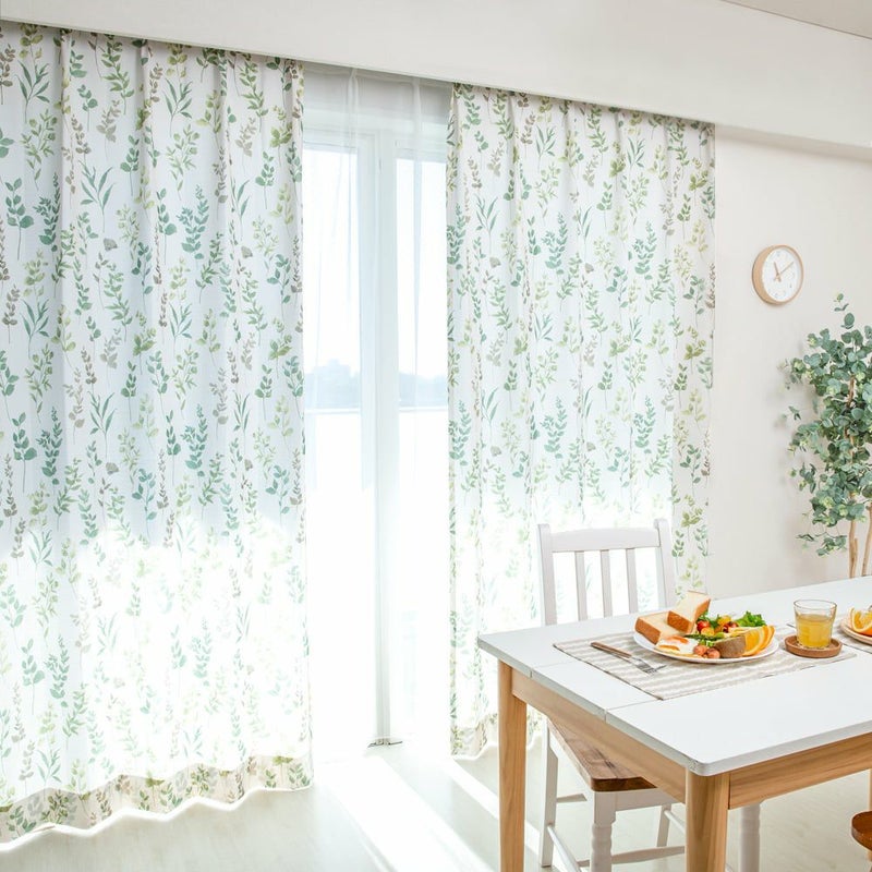 【撮影コーディネート】レースカーテン<コモン>水彩タッチでのびやかに描いたリーフ柄で、お部屋を明るく華やかな空間に演出します。国内メーカー「サンゲツ」の上品なカーテンを取り入れて、スローライフな生活をしてみませんか?