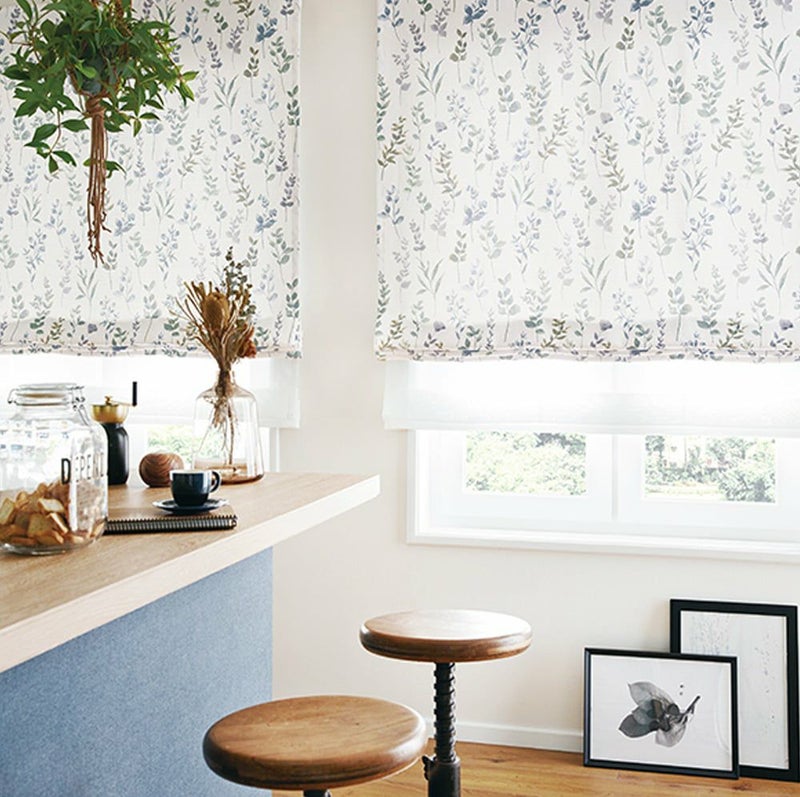 腰窓や小さい窓がある空間にはシェードもおすすめ。リーフ柄も綺麗にみえて、気軽に取り入れやすいシェードは大人気。