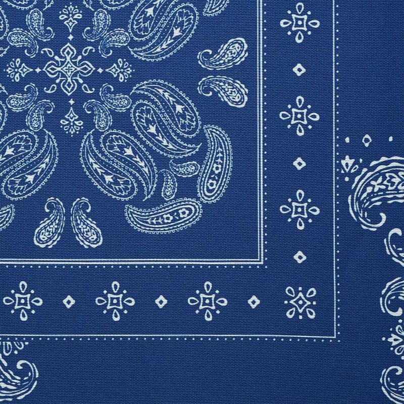 バンダナ柄だが、生地はしっかりとした生地感。手に持つと垂れるしなやかさがラフな印象を与える。程よい厚みで安心感もある生地感だ。
