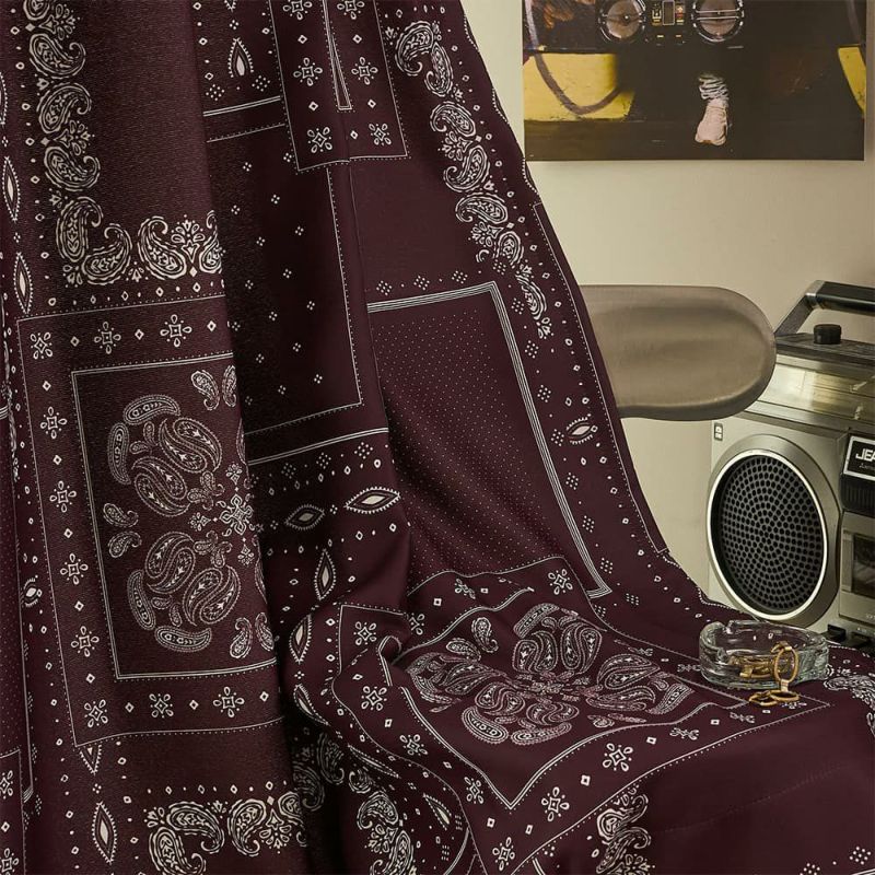 このペイズリー柄は、ストリートの歴史とリンクするリアルな存在。 ただの装飾ではなく、カルチャーを背負ったデザイン。 スケートボードが立てかけてある部屋、ヴィンテージレコードやポスターが並ぶ空間、そのすべてに馴染みながら、存在感を放つ。 ストリートインテリアを極めるなら、このカーテンで完成する。