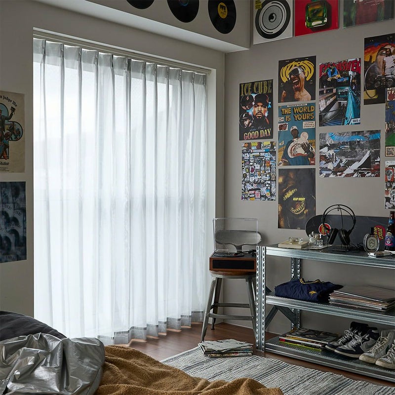 無機質なコンクリート、夜のネオン、ざらついたアスファルト。そんな都市の空気を、あなたの部屋にも。光を乱反射させるこのカーテンは、冷たさとエモさのバランスを操る。