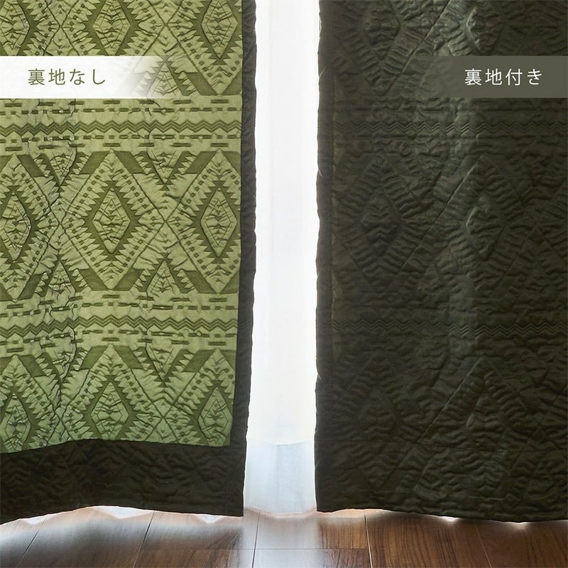 平坦では終わらない表情。型押しのような凹凸で表現されたオルテガ風のデザイン。カーテンではほとんど見ないかなりレアなデザインで、「ユニークさ」と「無骨さ」の相反する要素が伝わってくる。