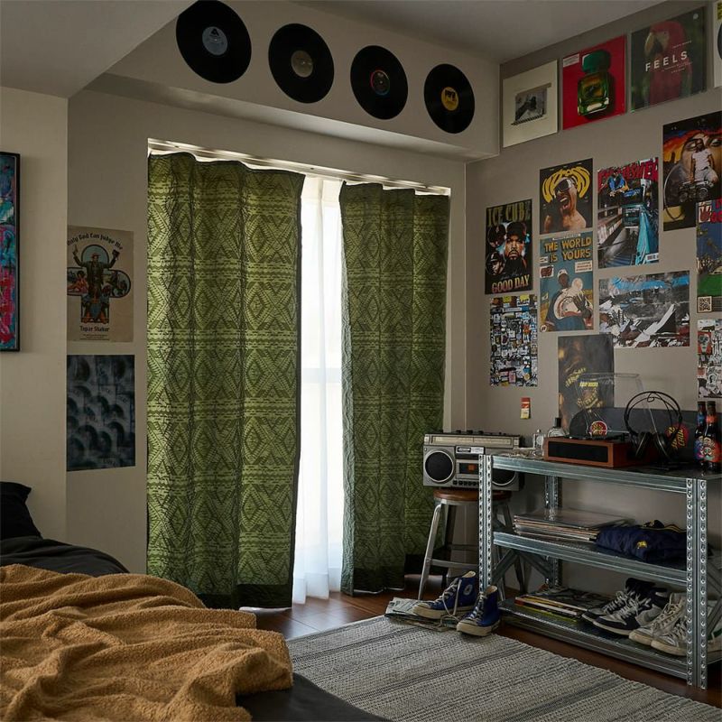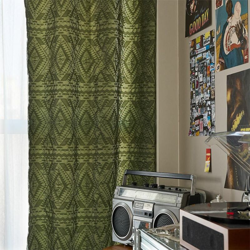ミリタリーとストリートを繋ぐシャカ感。MA-1のようなルーズなカーテンの「フロスト」は、部屋の空気を変える一枚だ。ラスティックな光を通しながら、ストリートのエッジを注ぎ込む。 ルールもなく、着飾らない部屋に、これひとつ。