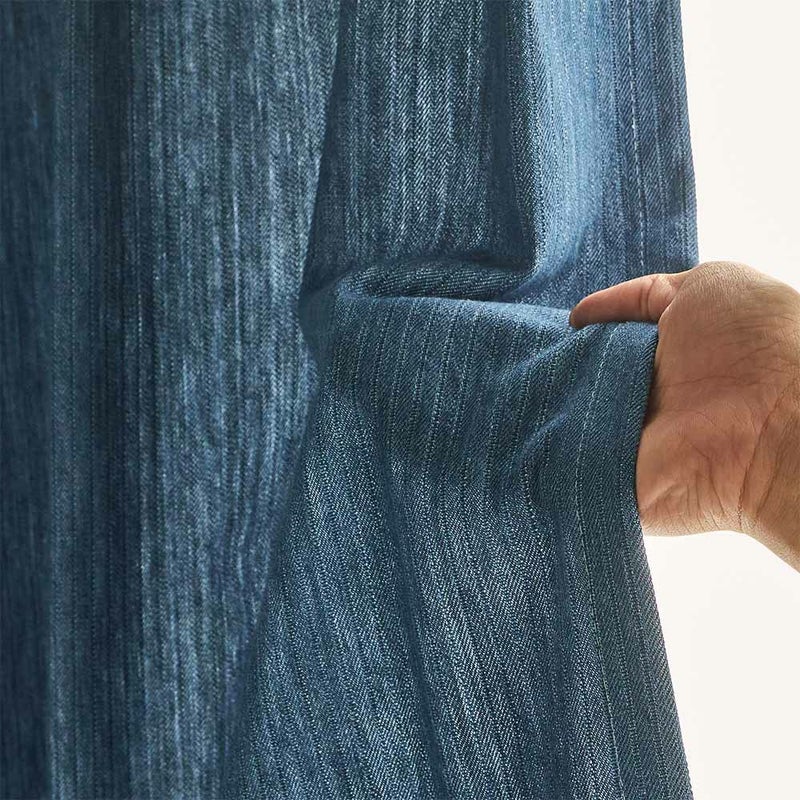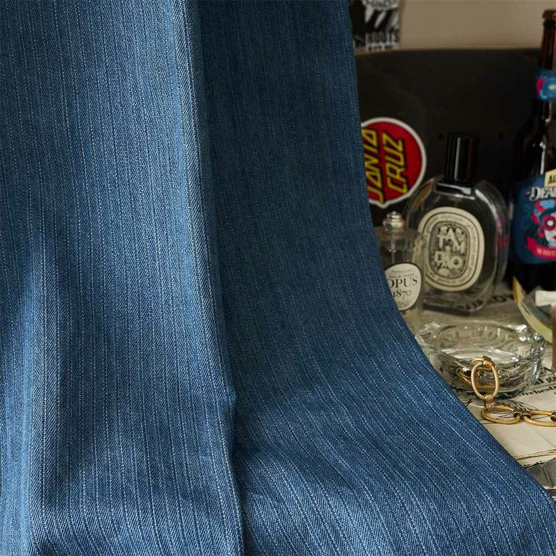 縦畝のピケストライプが、無地では出せない“奥行き”と“動き”を生む。 ラフで武骨、それでいて計算された美しさ。空間に“直線のリズム”を刻む、唯一無二のデニムカーテン。