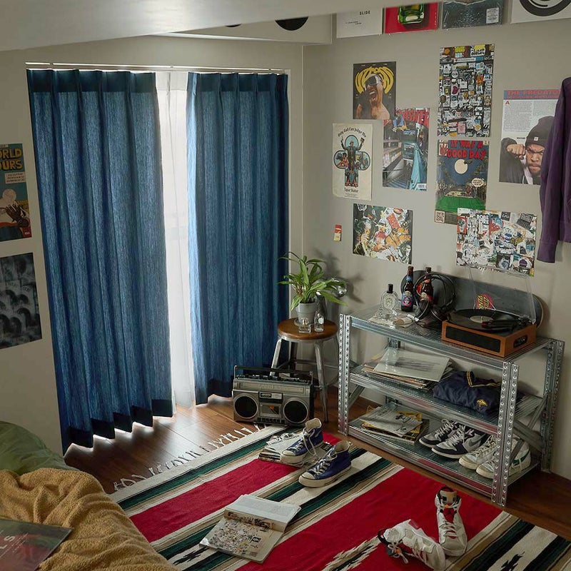 使い込まれたような風合い。インディゴの濃淡がつくり出す、計算されすぎないグラデーション。 ブリーチデニムの持つその奥行きが、ただの“部屋”を、夕暮れのようなエモーショナルでクールな空間へと変える。 ストリートの空気とヴィンテージの余韻、その両方を纏うデニムカーテンを手に入れろ。
