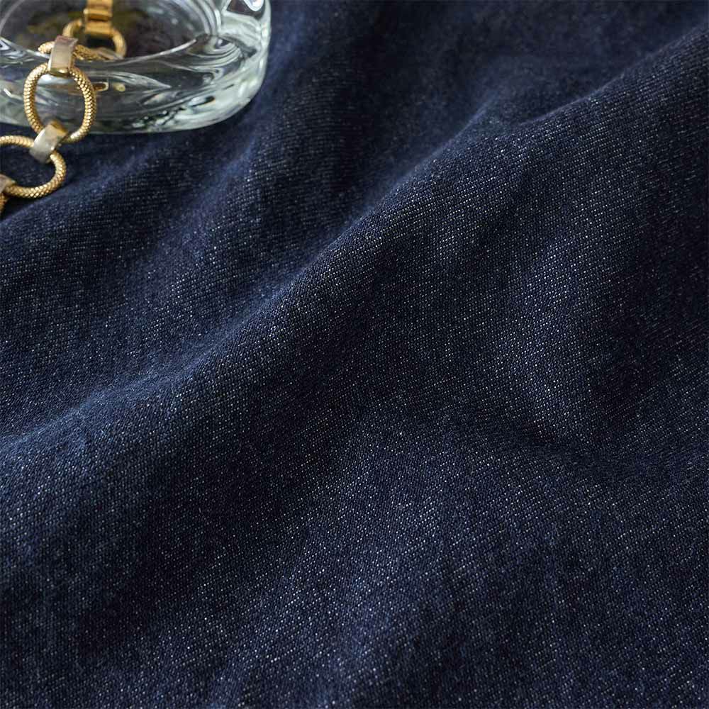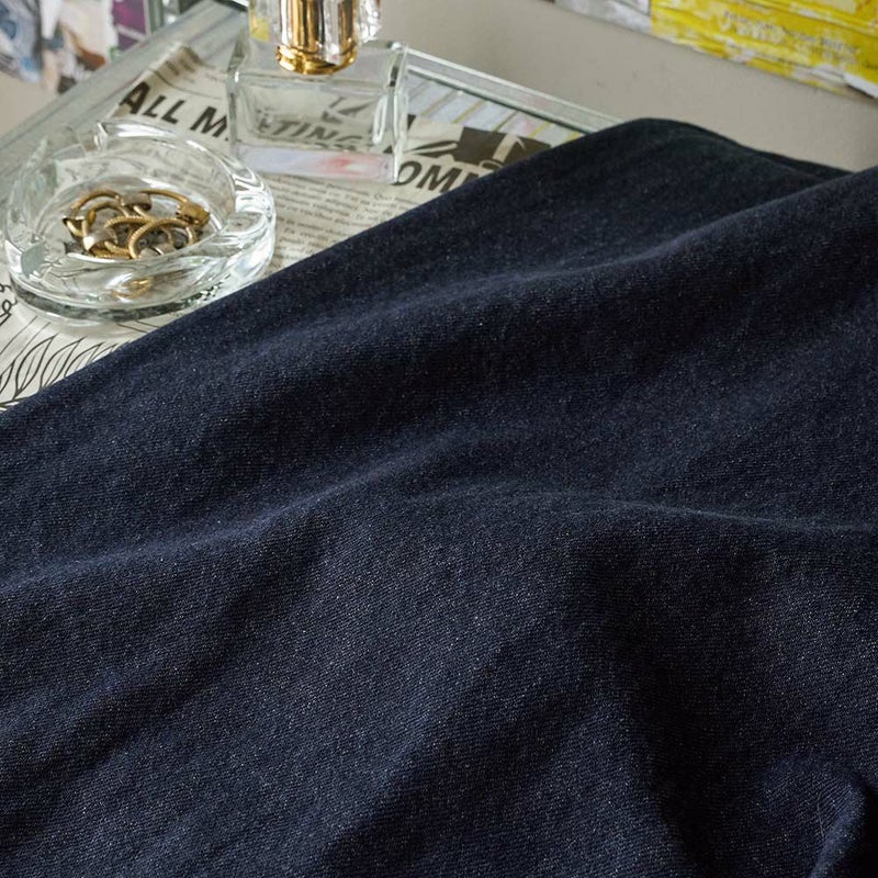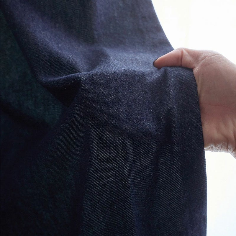 化繊には出せない、天然素材ならではの呼吸を感じる。 バイオウォッシュによるまだらなムラは一点一点異なり、空間や時間によって見え方も変わる。 季節や光の角度さえも、このデニムの表情の一部になる。