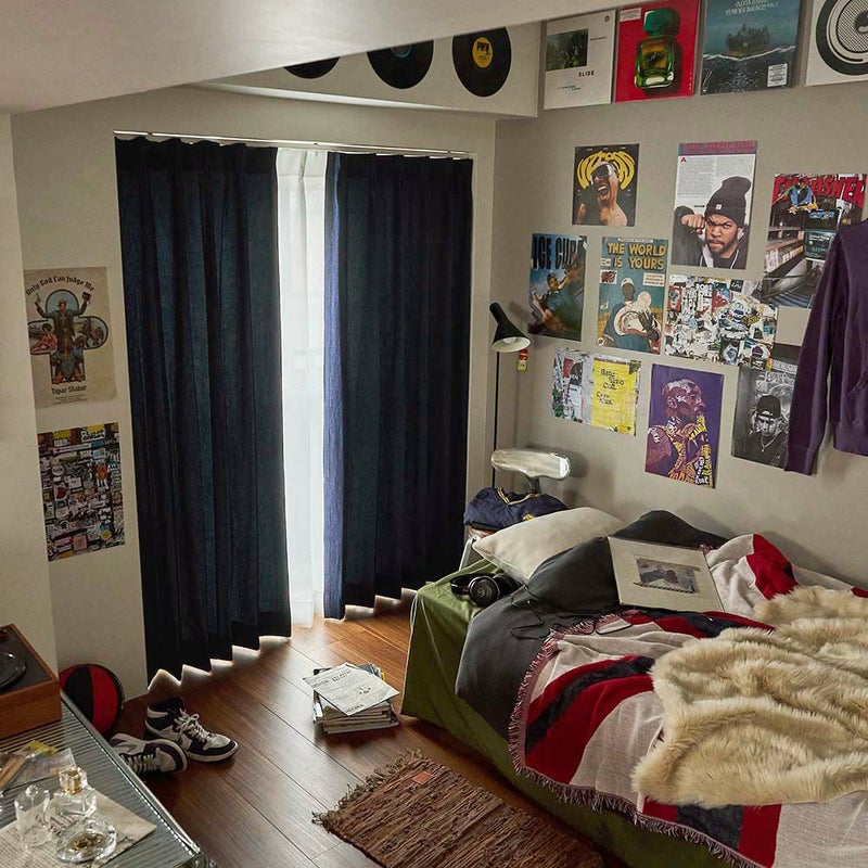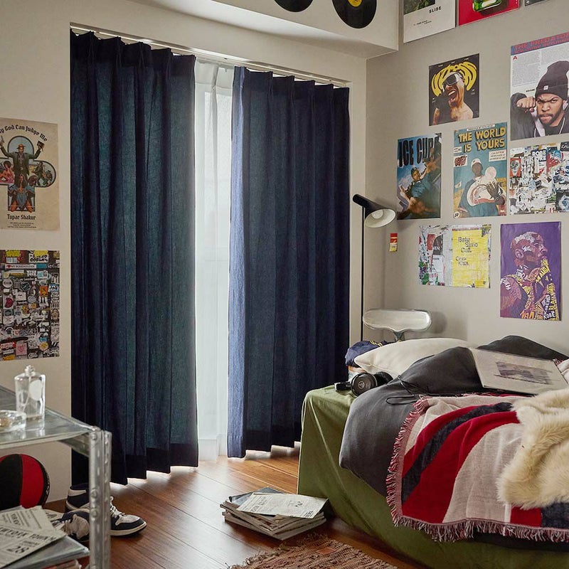 カーテンの裾をあえて引きずる。 これはだらしなさじゃない。ストリートファッションと同じように、“抜け感”を楽しむスタイルだ。 部屋だって、完璧すぎるより少し崩したほうがイイ。ブレイク=壊すことで、新しい美しさが立ち上がる。