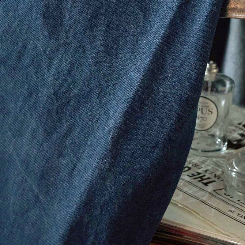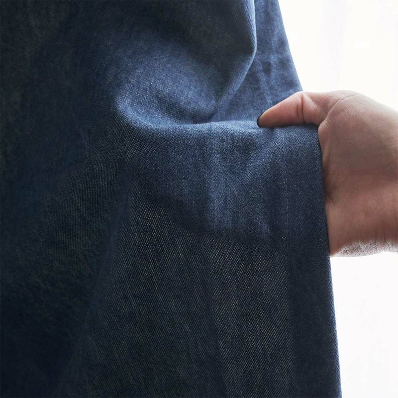 カーテンとしてはかなり厚く、ハリがある14オンスデニム。そのぶん、シワは深く刻まれ、色落ちにはくっきりとした濃淡が出る。厚みがあるからこそ出る奥行き。濃淡がしっかりとした経年変化を愉しむなら、断然ヘビーオンスだ。