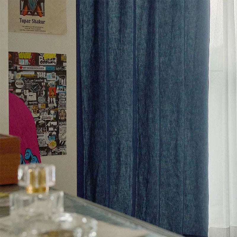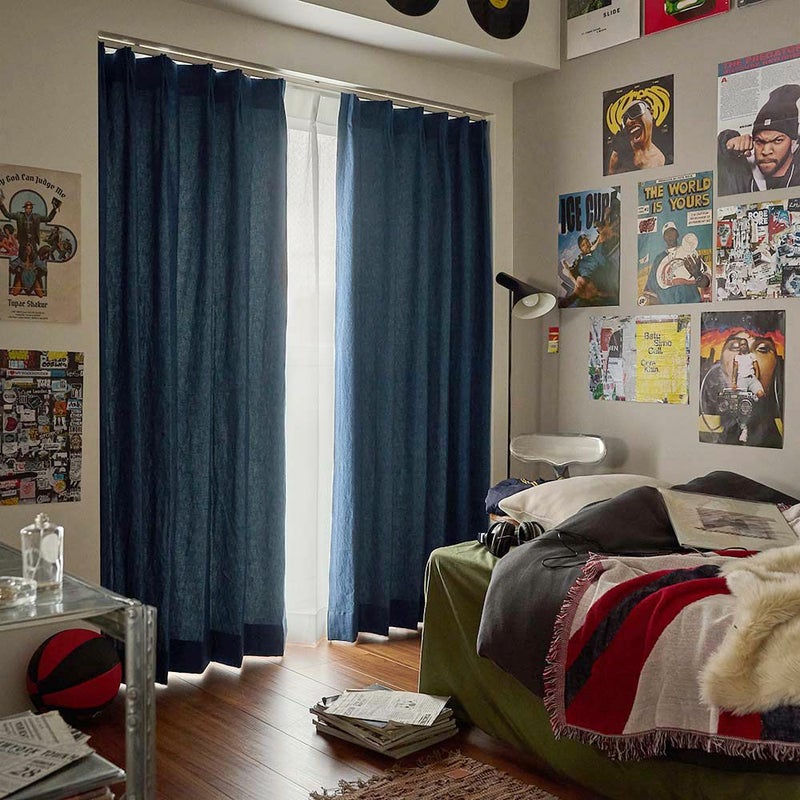 グラフィティの滲みや、レコードのノイズのような「整っていない」ことに魅力がある。 そんな空気感を部屋に落とし込めるのは、このカーテンしかない。 -