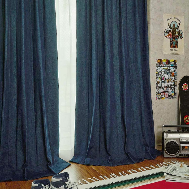 ブルーグレーのデニムカーテン