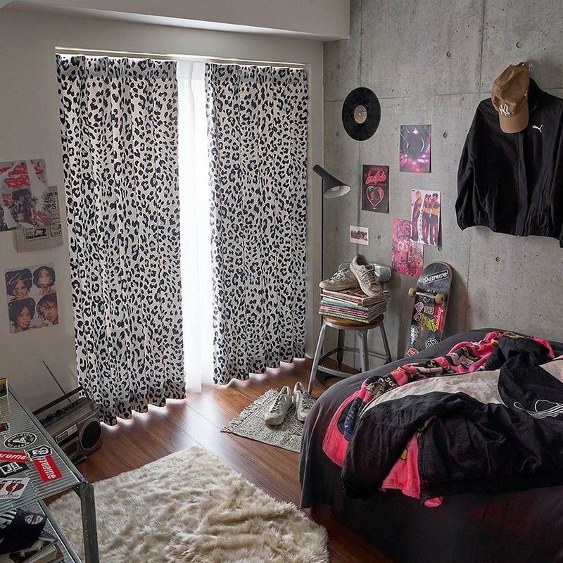 柄物でセクシー、その一線を極めたのがこのモノクロレオパードカーテンだ。