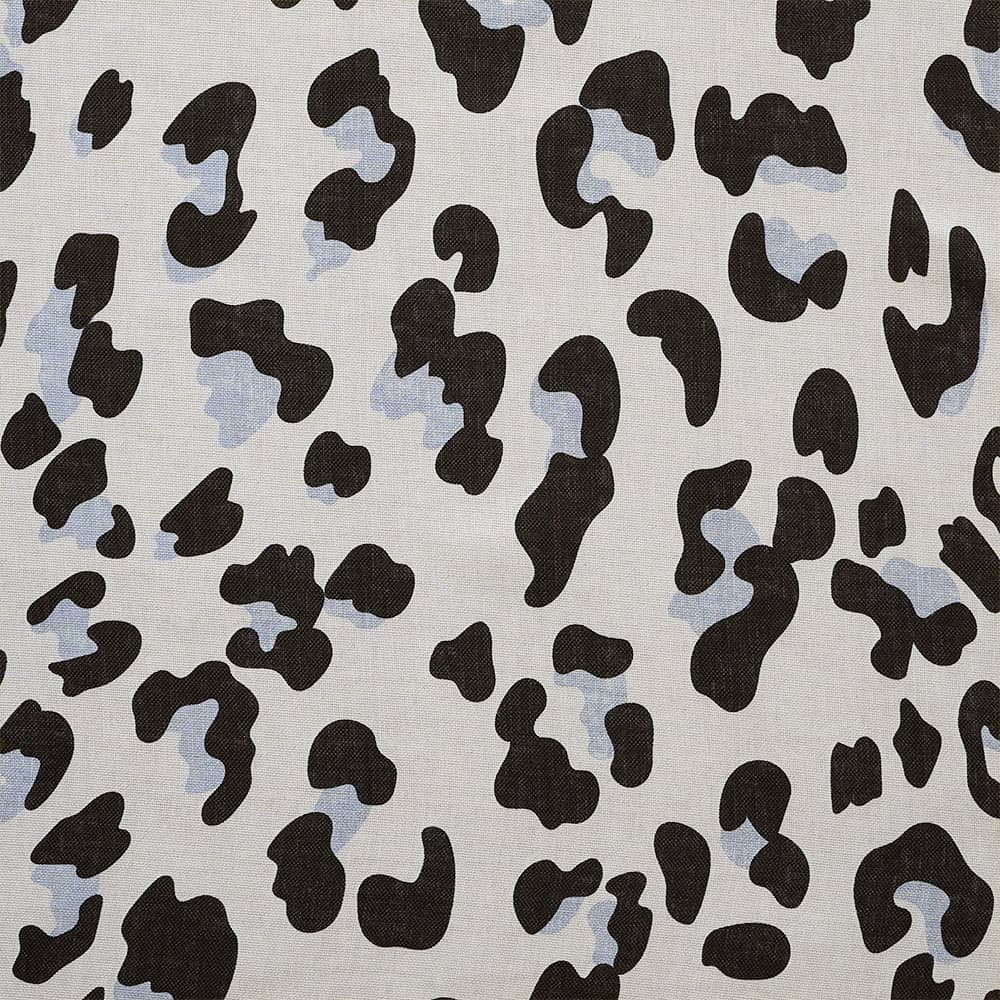 派手な印象のレオパード柄を、あえて白と黒の無彩色で洗練。コンクリート打ちっぱなしの壁や、インダストリアルな家具にも負けない、都会的でクールなエッジを空間にもたらす。
