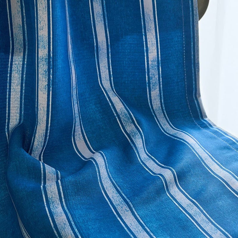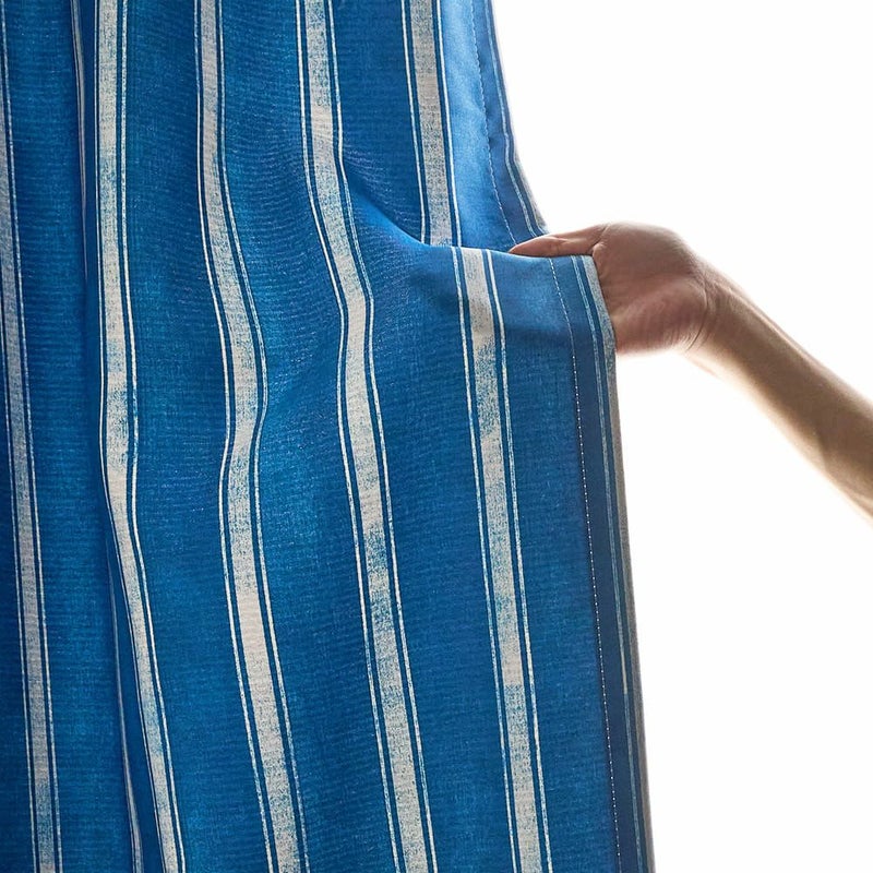 このストライプカーテンは、そのスピリットをインテリアへと落とし込んだ一枚だ。整然と並ぶストライプは規律と美しさを、かすれた表情はヴィンテージなリアルさを宿す。窓辺から、部屋の空気を一気に塗り替える存在感を放つ。 -