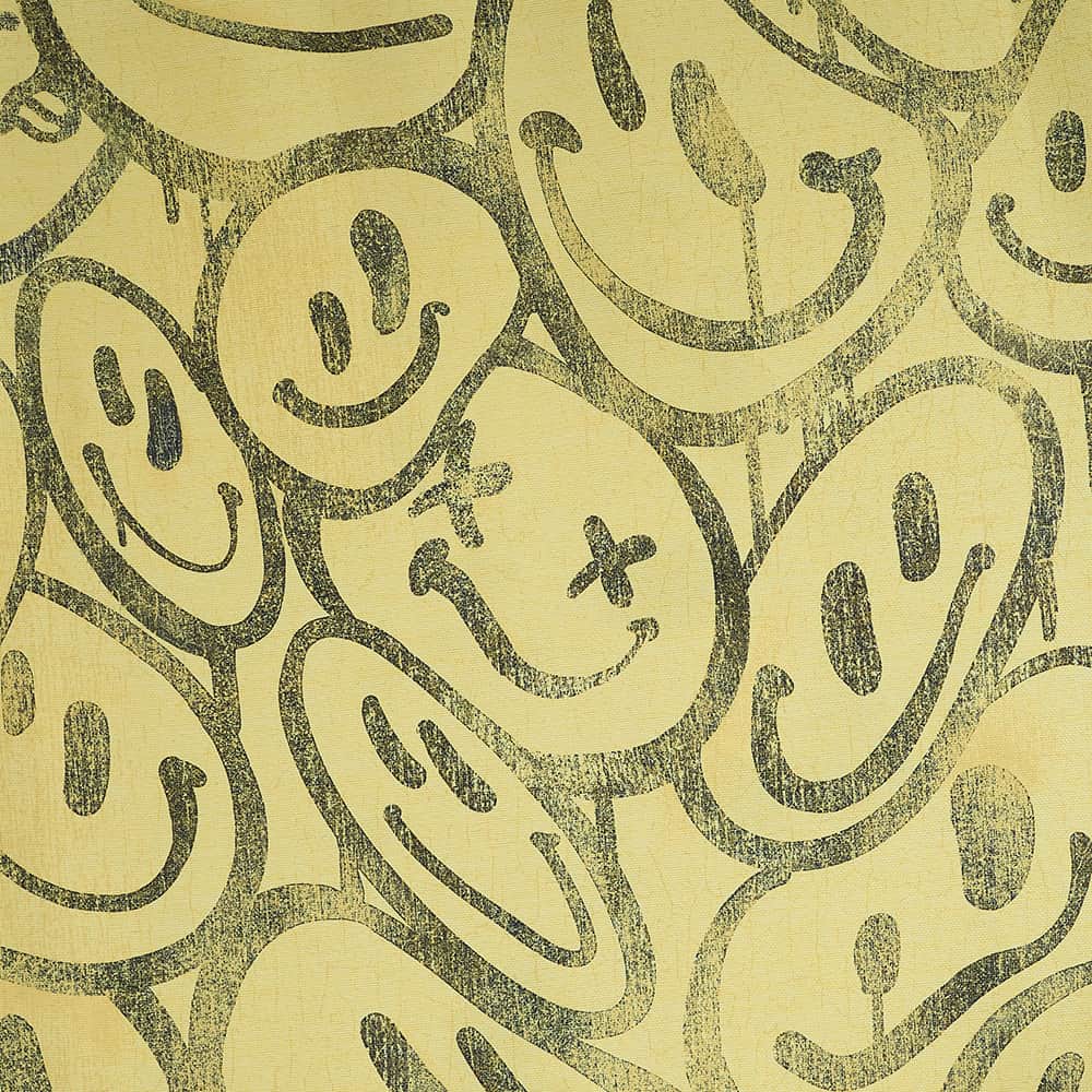 モチーフは、スプレーで描かれたスマイリーフェイス。かすれを残した表情、輪郭の揺れ、塗りムラ、勢いのあるタッチまでをそのままデザインに落とし込んだ。ラフさの中にリズムがあり、視線を動かすたびに表情が変わる。