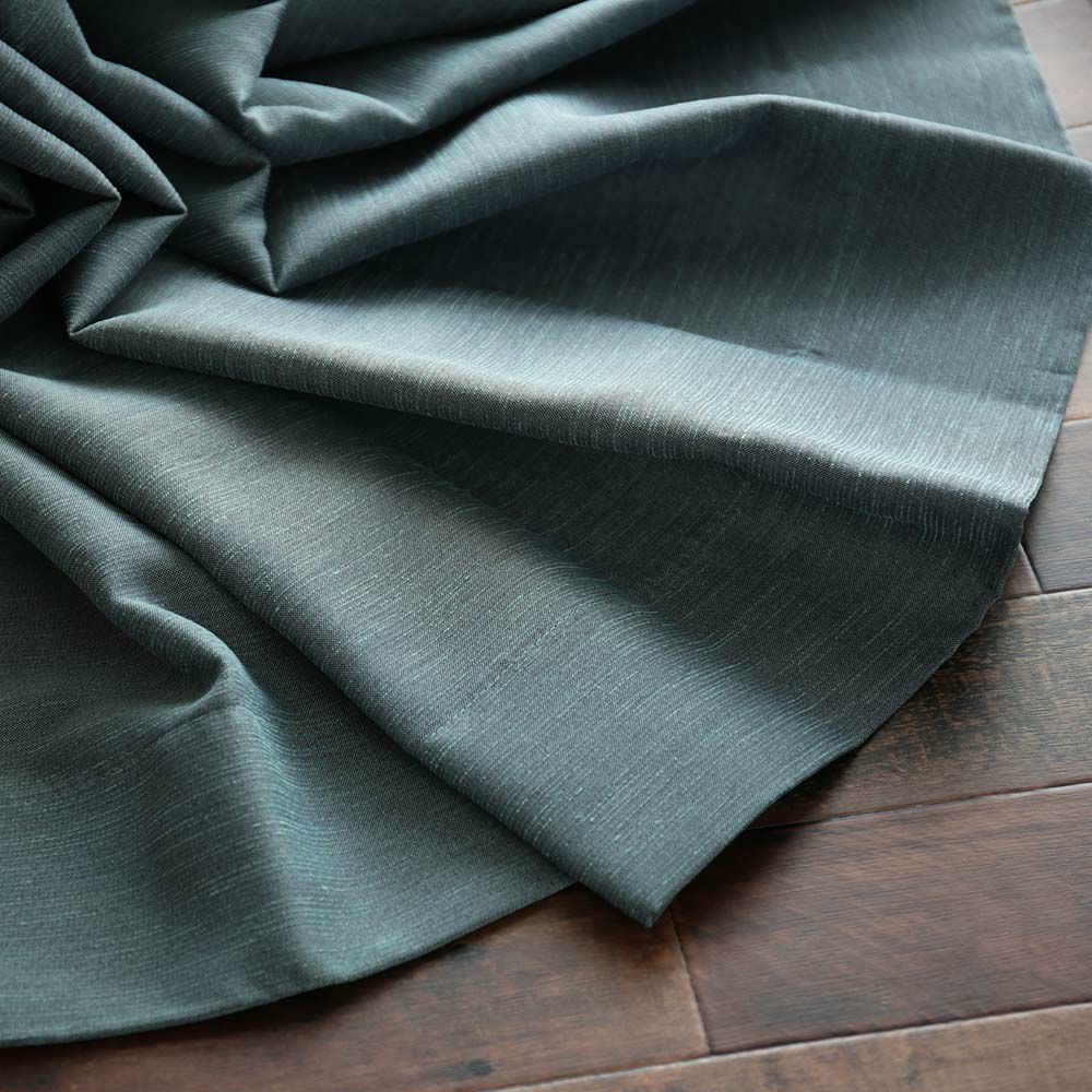 繊細な糸で密に織り上げる事で、薄くて軽い遮光カーテンが実現しました。表のシャンタンのハリ感とさらりとした風合い、反対に裏側のサテンはなめらかでしっとりとした手触り、その2種類の風合いが相まって、優美なドレープ感が生まれます。