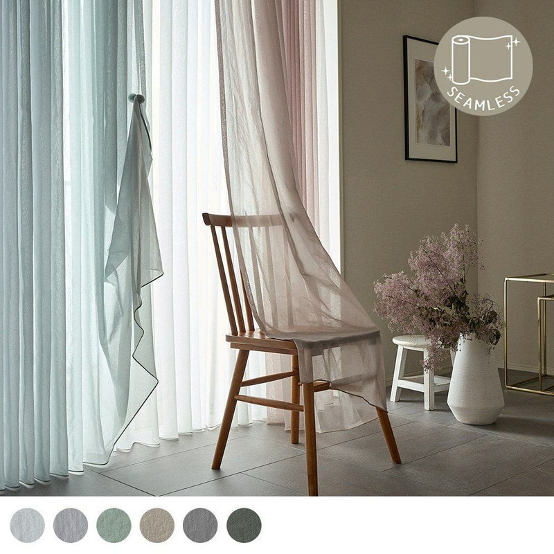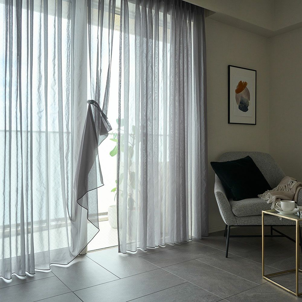 ニュアンスカラーのリネンライクボイルを、美しいシームレスカーテンに仕立てた1枚。