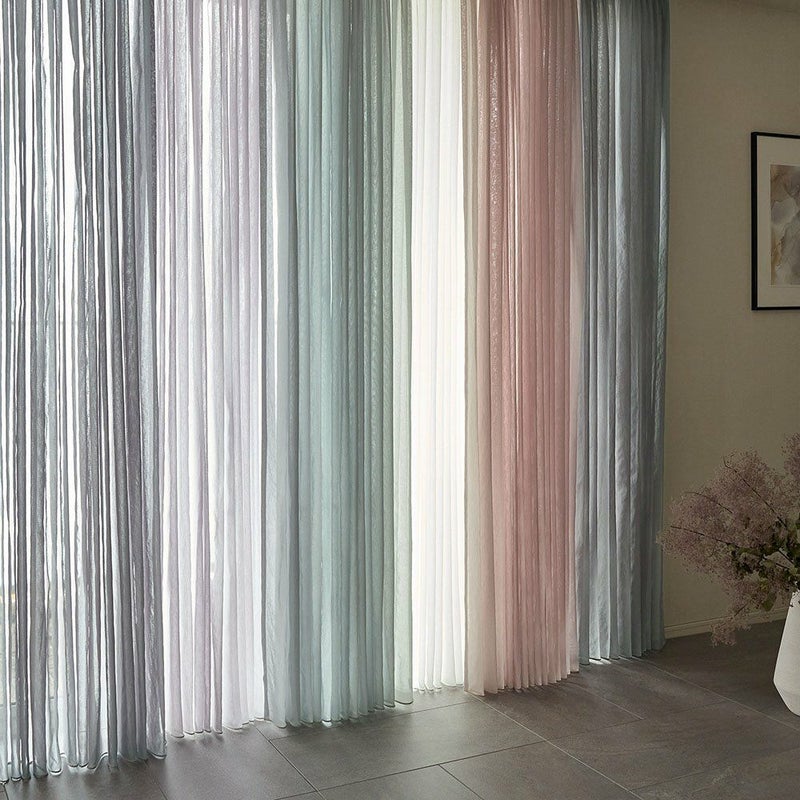 ※3色のカラーを少し重ねてかけています。やわらかな光をまとい、揺れるたびにニュアンスを変えるレースカーテン。 ナチュラルな質感と上品な色合いが、空間にフレンチヴィンテージの気配を添えてくれます。