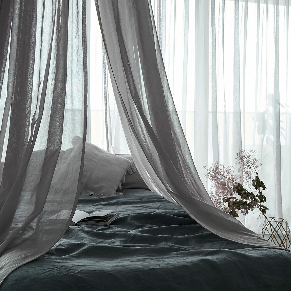 暗めカラーのレースが空間を引き締めて、寝室に上品で穏やかなムードを演出します。 お気に入りのベッドリネンや小物と組み合わせれば、洗練されたお洒落なコーディネートが完成します。 -