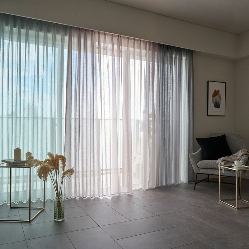 ふんわりナチュラルなボイルカラー:パウダーベージュ、(窓にかけたレース)ミスティグレー