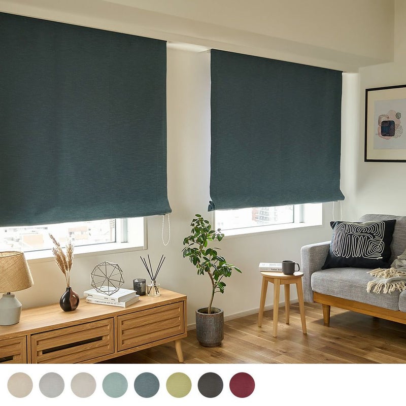 ラグジュアリーな美しさを持つ遮光シェードカーテンです。 1.2級遮光、防炎の機能性を備えた美しいシャンタンの生地、ニュアンスのあるカラーバリエーション。