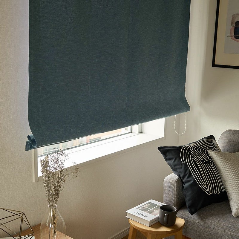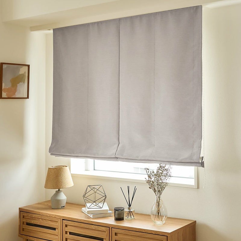 シェードは、高さで調整できるので、日よけや目隠しとして使いやすいところもポイント。シャキッとしたハリ感があるシャンタンは、引き上げるとコンパクトに折りたたまれて、すっきりした見た目に。 また、腰窓や小窓、タテ長の窓など、通常のカーテンが使用しにくい窓にもおすすめです。