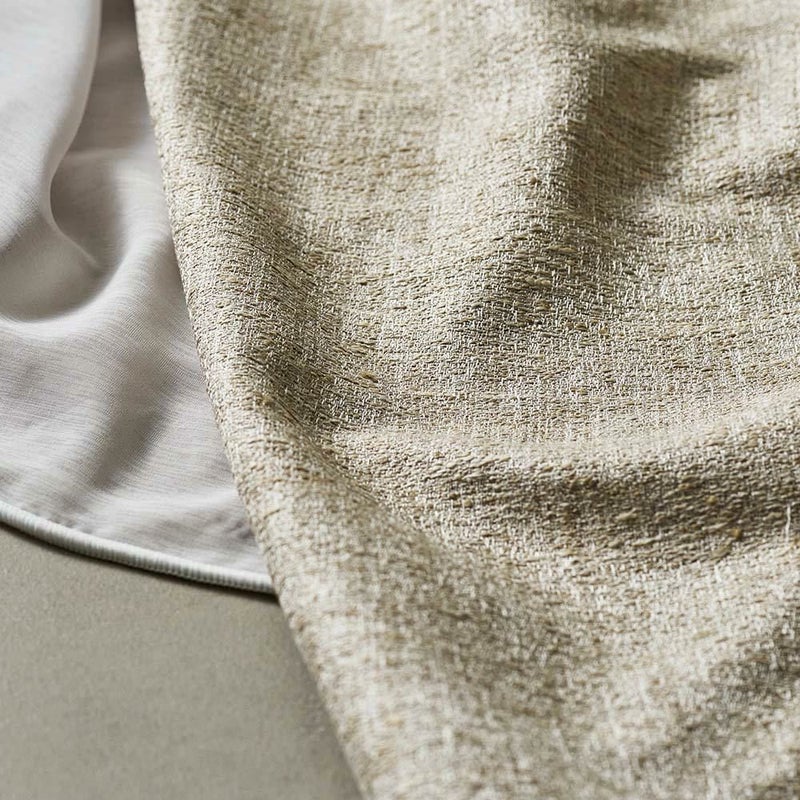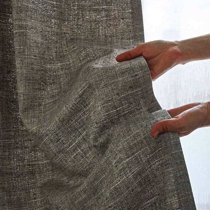 こちらはタテ糸に光沢のある糸を、ヨコ糸に大きなネップのある糸で織り上げた上品な遊び心のある1枚。まさに大人のための洗練されたツイードカーテンです。 -