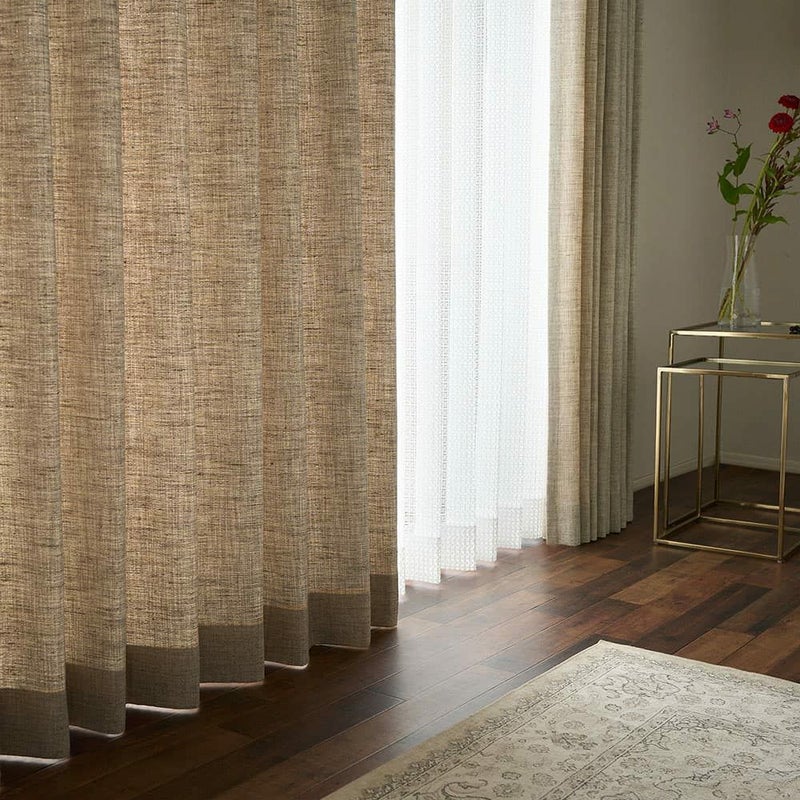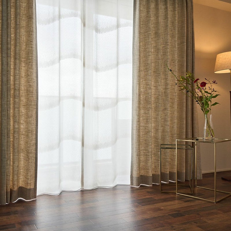 ヴィンテージ空間を引き立てる、上品なナチュラルカラー2色をご用意しました。同系色の糸をミックスしたカラーは、深みのあるシックな色合い。落ち着いたスモーキーミストと柔らかなアプリコットベージュで「大人のカーテン」を是非お楽しみください。