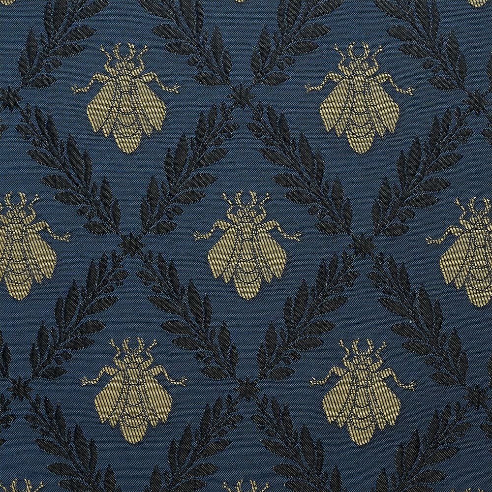 英国紳士が愛用する高級ネクタイのような気品溢れる柄が魅力。重厚感のあるシックなネイビーに垣間見える深い色合いのローリエ柄。芳醇な香りに誘われるかのようなゴールドの蜜蜂が、カーテンにエレガントなコントラストをもたらしています。