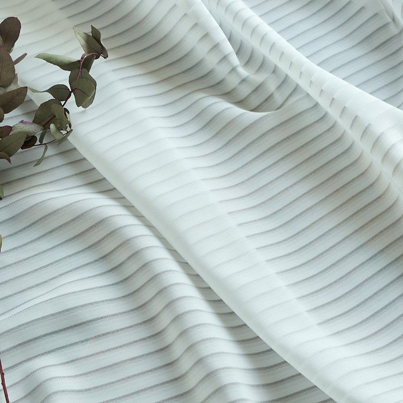 繊細な織り柄で表現された細かいボーダーラインが、光と影のコントラストを美しく演出。プリントでは味わえない、立体感のある質感と上質な風合いが魅力です。
