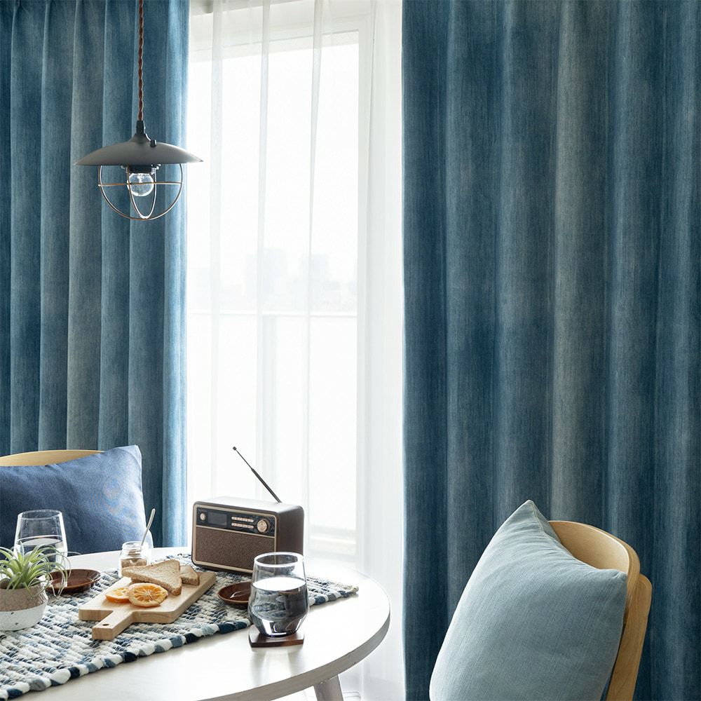 リビングにはリゾート的な明るい雰囲気を感じるデザインの「マーリン ブルー」、寝室には光を通しにくい遮光付きデニム風カーテン「フェード」などがおすすめです。