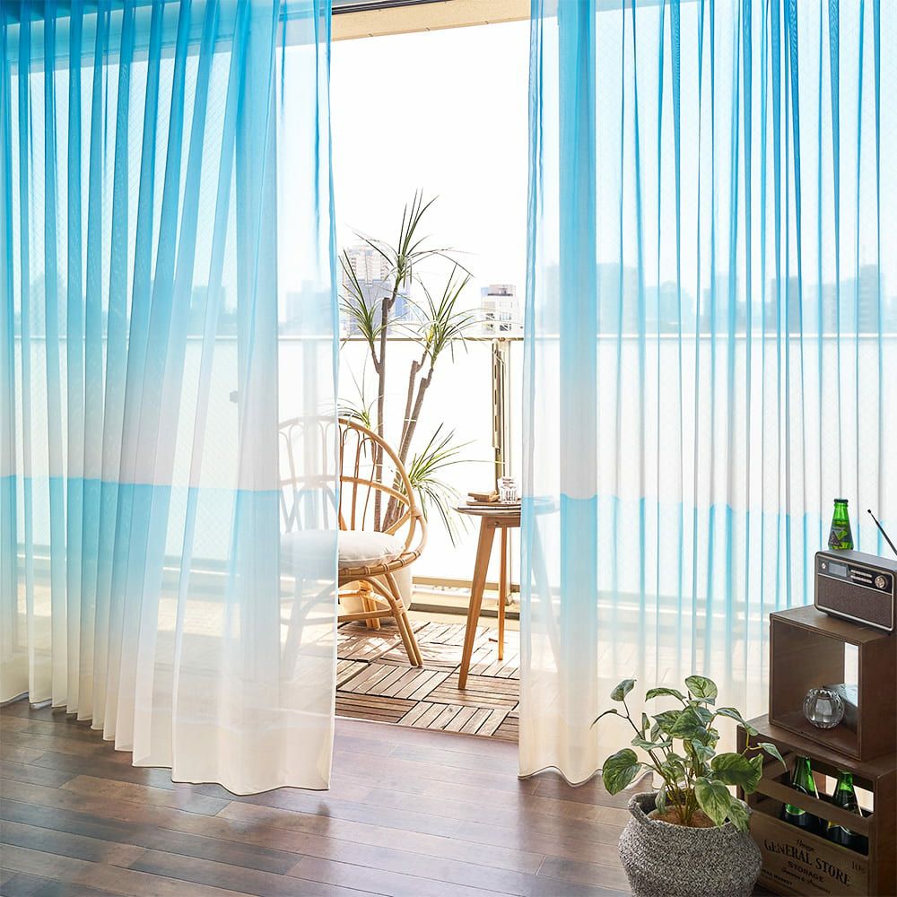 ハイセンスな人たちを魅了する、美しい海を模したグラデーションレースカーテンが、当店オリジナルカーテンとして新入荷。