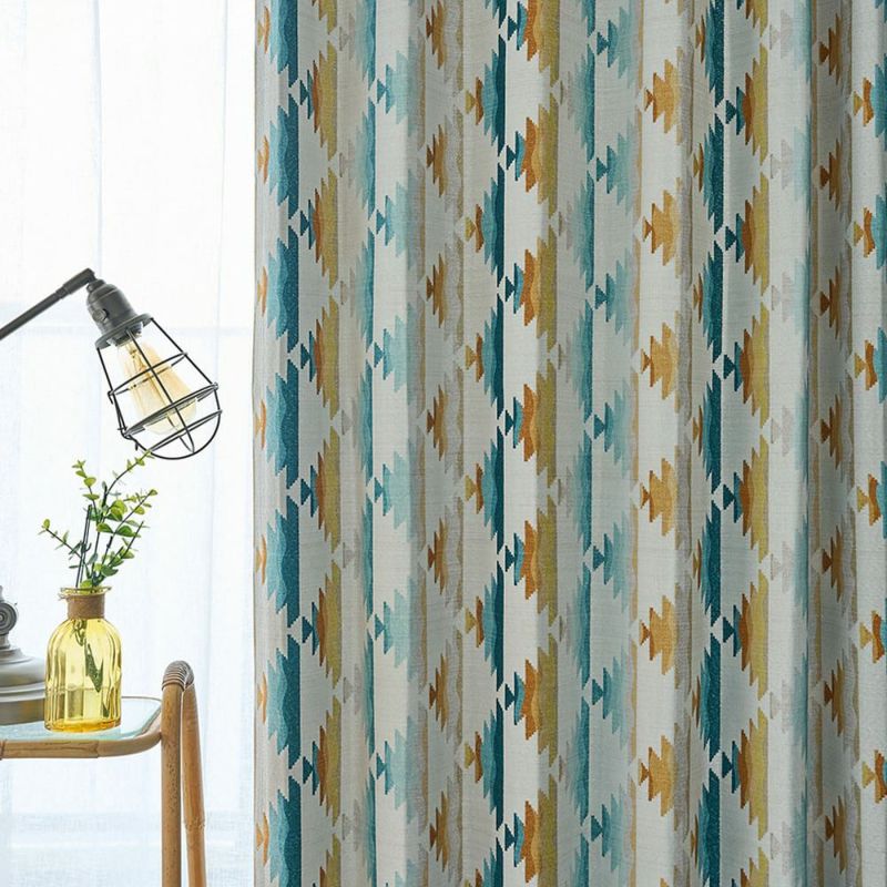 一見ネイティブな雰囲気にも見えるデザイン、実は西海岸のサンセットをイメージして作った当店オリジナルの遮光カーテン。水平線に沈む夕日を描いたデザインが1日の疲れを癒してくれそう。