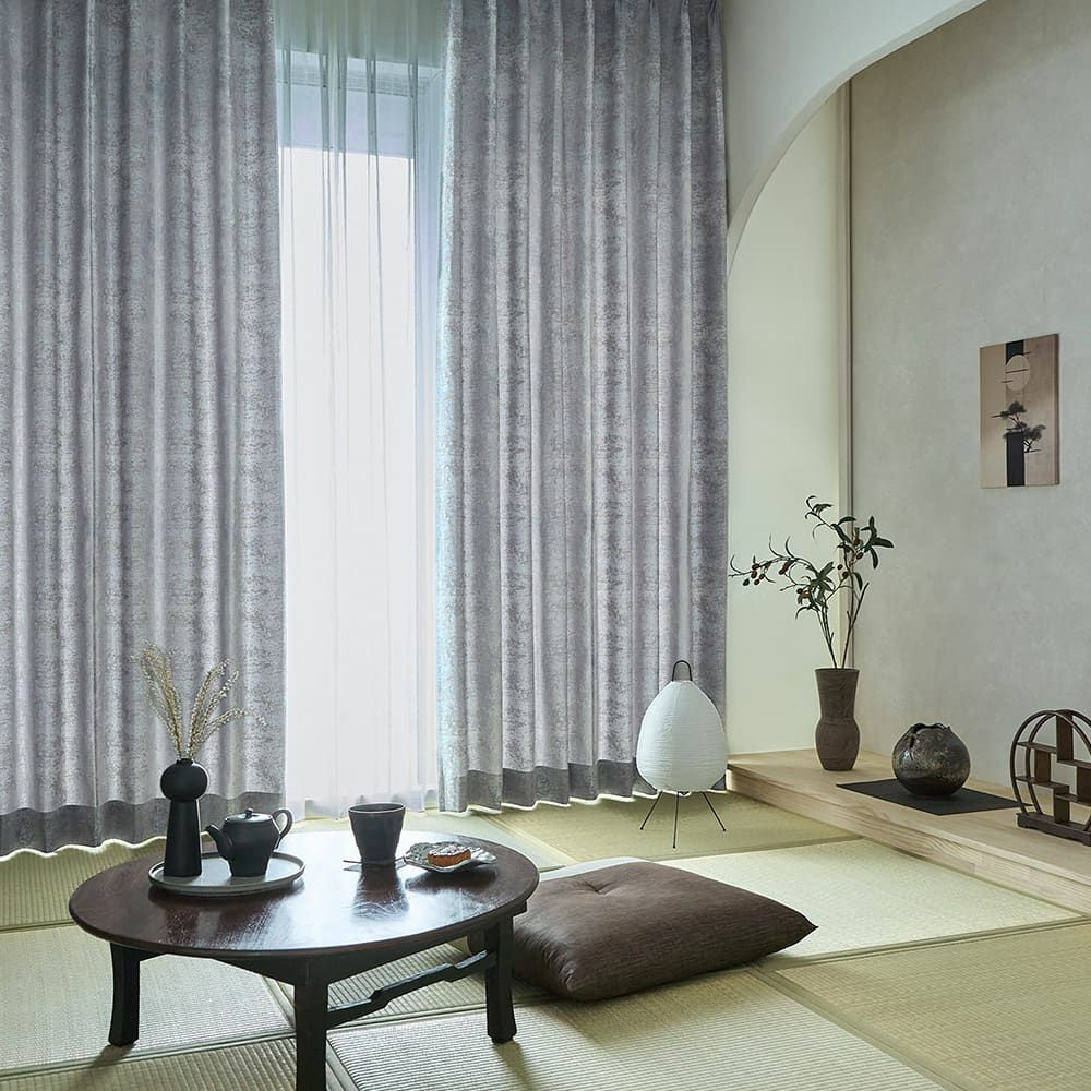 日本らしい技を感じるカーテンが、くつろぎの和室にシックで高尚な雰囲気を与えます。空気が研ぎ澄まされたように繊細な表情からは、きりっと深みのある味わいが。引き締まった印象の和空間の完成です。