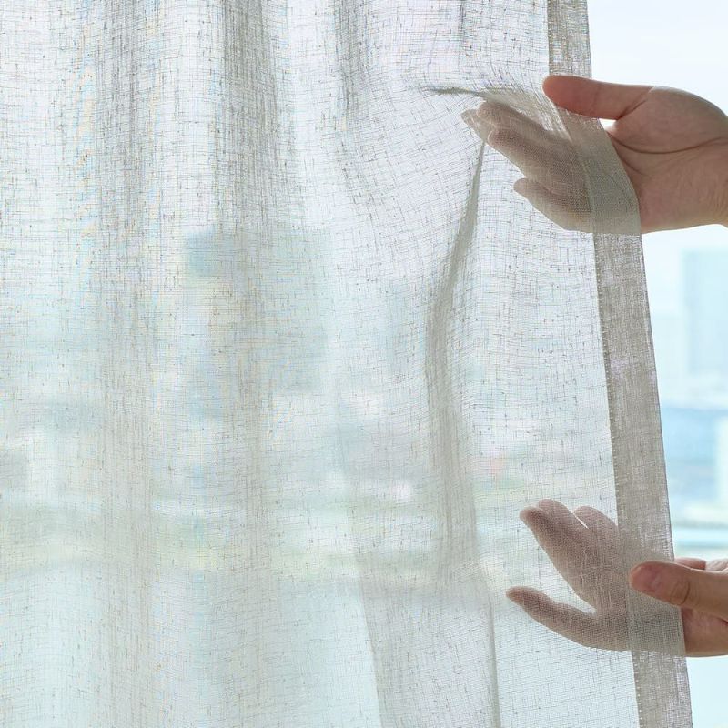 細い糸と太い糸を巧に使い、リネンのように自然な節(ふし)感を表現。本物の天然繊維のように上品な透け感があり、やわらかな陽を部屋に照らして、健康的な暮らしに寄り添います。